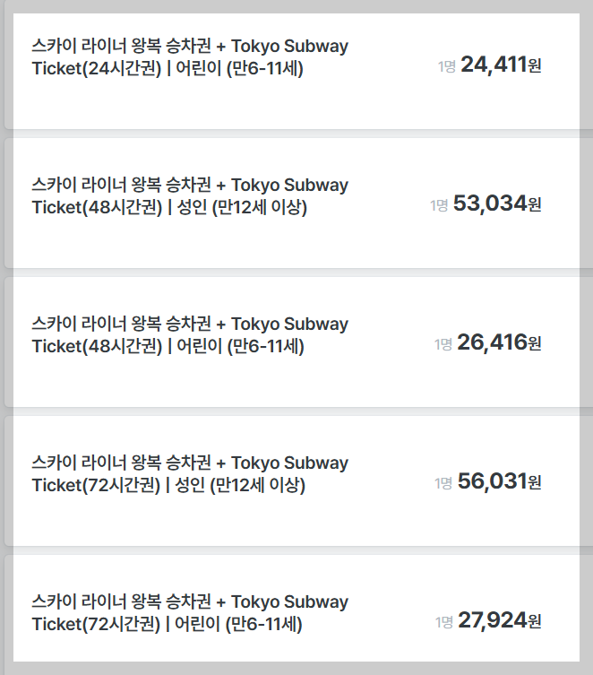 특히, 도쿄 스카이라이너 왕복권과 도쿄 지하철 패스(24/48/72시간권)를 결합한 콤보 이용권은 여행자들에게 시간과 비용을 절약할 수 있는 최고의 선택지로 꼽힙니다.