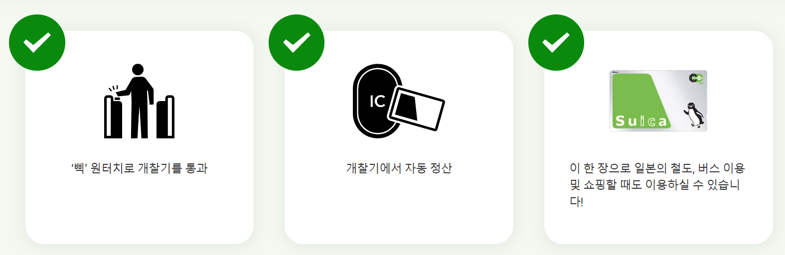 - 재방문 시 재사용 가능: 이전에 사용한 Suica 카드 그대로 사용 가능