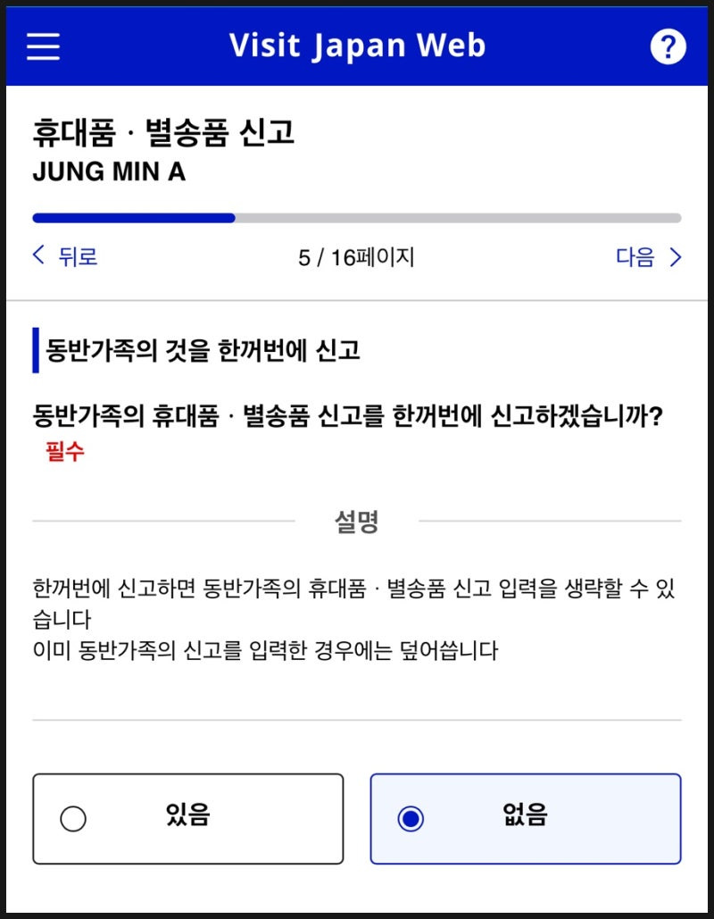- 동반가족이 있는 경우 등록하는 것이 좋습니다. 등록하지 않으면 입국 시 불편할 수 있습니다.
