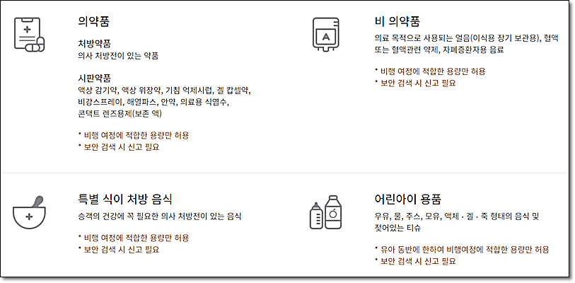 4. 기내 반입 제한 예외 대상 물품(의약품, 어린이용품)