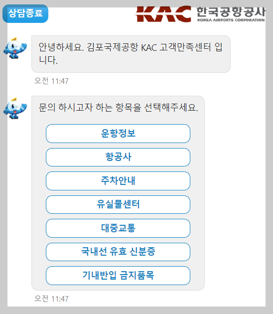 ● 한국공항공사챗봇