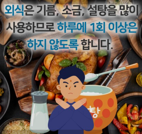 우리의 식단의 김치나 젓갈류 등의 절임 식품과 국물 찌개 위주의 식사는 과도한 소금 섭취가 될 수 있습니다. 과도한 소금 섭취는 고혈압과 이로 인해 혈관이 지속적으로 수축해 뇌혈질환의 위험을 증가시킬 수 있습니다. 과도한 소금을 피하고, 식사 중에 소금을 조절하여 혈압을 유지하는 것이 중요합니다.