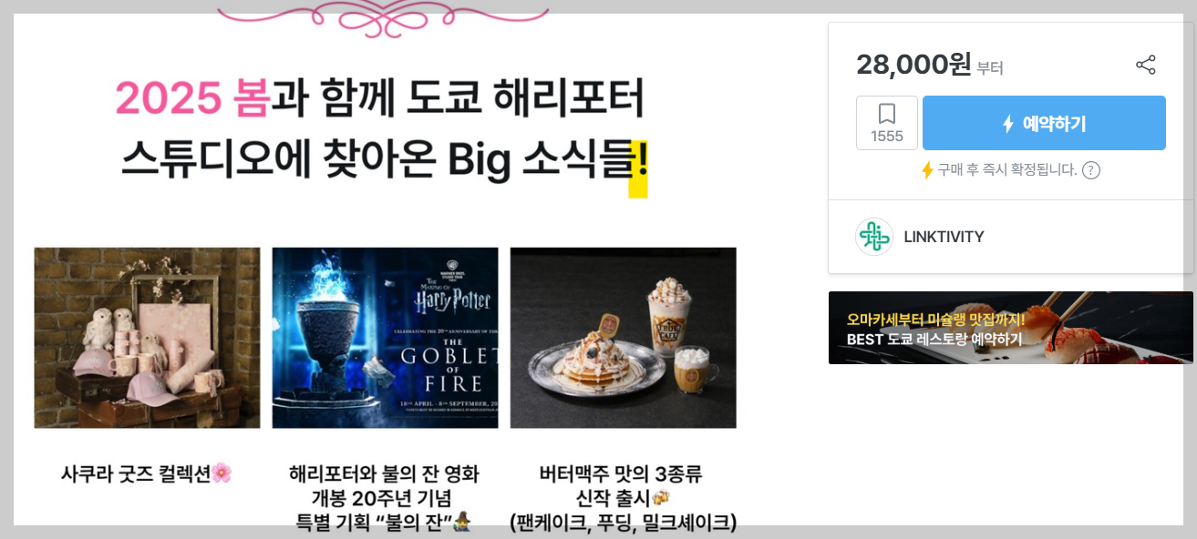 - 마이리얼트립 : 워너 브라더스 스튜디오 투어 도쿄 - 더 메이킹 오브 해리 포터 티켓 (Bic Camera 면세 쿠폰 혜택)