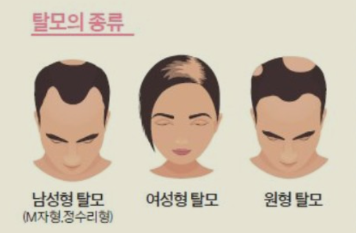 탈모의 원인은 다양합니다. 유전적인 요인 외에도, 스트레스, 올바르지 못한 식습관, 급격한 다이어트, 환경 요소, 그리고 내분비 질환이나 영양 결핍, 약물 사용, 출산과 수술등의 건강 문제 등이 관련되어 있습니다. 남성형 탈모, 여성형 탈모, 원형 탈모증, 휴지기 탈모증이 있습니다.